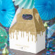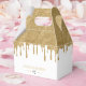 White and gold glitter drip wedding favour box. Personalise it with your name and anniversary date.