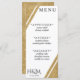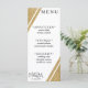 White and gold glitter wedding reception menu card with corner stripe. Elegant typography for an expensive look at an affordable price. Customise the meal list and personal details. Great for a modern minimalist wedding theme with a touch of style.
