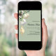 For a Christmas party with family and friends. An elegant, modern sage green background. Decorated with gold and white baubles and some greenery and a pine cone. Personalise and add the details.
