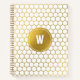White & Gold Hexagon Pattern Monogrammed Initial Notebook