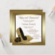Womans elegant white and gold 50th birthday party invitations with gold glitter high heel shoes on a beautiful gold and white background. These beautiful white and gold high heel shoe party invitations are easily customised for your event by simply adding your event details in the font style you prefer.