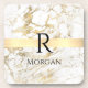 Personalise your name and monogram in black on trendy Gold Bar on White and Gold Marble.