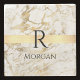 White & Gold Marble, Black Name & Monogram Stone Coaster