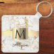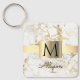 White & Gold Marble Gold Box, Black Name Monogram Key Ring