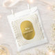 A beautiful combination of white and faux gold with a dash of black. The minimalist oval arch lines create a modern geometric sophisticated contemporary style. Elegant wedding favour bag design with modern elements. The simple setup of the typography gives it a distinct look. Matching wedding stationery items and other wedding invite formats are also available.