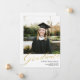 This photo graduation announcement features a modern calligraphy "graduate" greeting in faux gold foil with a white background. The backer is the same colour. This simple yet fun design really allows your photo to shine by keeping the details minimal while the greeting sets the festive tone. Tip: you can easily add more text or an additional photo to the back.