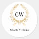 White background. Decorated with a faux gold wreath. Personalise and add your monogram initials and name. Black text.