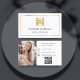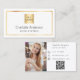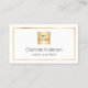 A chic white background and a faux gold frame. Personalise and add your business logo, name and text on front.