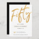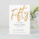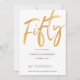 White Gold Script Fifty Birthday Invitation