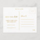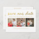 Gorgeous faux gold foil typography on the front of this designer postcard which you can upload into with 3 of your own engagement/wedding photo portraits. Easily and quickly personalise this designer professionally printed save our date postcard here and now by just typing over the example text and adding your own photographs. Elegant, chic, simple and classy gold script/cursive typography.