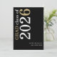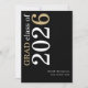 White Gold Text 2025 Black Graduation Announcement. A modern stylish typographical design to announce the news of your graduate, with stylish large typography rotated and to the left hand side at the top in white and gold on a classic black background. Easily personalise the rest of the text. including your message on the back