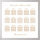 An elegant seating chart poster featuring stylish text in a golden shade of beige on traditional classic white. Please personalise the names of the couple and the names of the guests along with any of the other text that you may wish to personalise.