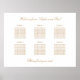 An elegant seating chart poster featuring stylish text in a golden shade of beige on traditional classic white. Please personalise the names of the couple and the names of the guests along with any of the other text that you may wish to personalise.