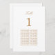 White Golden Beige Guest Names Table Card, easy to personalise in the online personalisation template in order to show the table number for the appropriate table and the guest names for that table. The design copies across to the other side of the card automatically so as to help guests to find their table from either side of the table. This table card design features stylish text in a golden shade of beige (faux gold / gold look) on traditional classic white. Featuring a simple plain minimalist design layout, the table card incorporates space around the text elements to allow for choice of display methods such as hanging or framing the card.