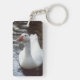 A photograph of a lovely white goose adorns this keychain!
