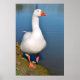 White domestic goose (Anser anser domesticus - Bird) walking near a pond