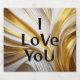 Beautiful "I love you" label for bottles of beer in white and gold.
