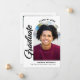 Be proud, rejoice and showcase this milestone of your favourite grad! Send out this stunning, simple, modern, personalised 4 photo announcement for an event to remember. On the front, bold, graphic, black handwritten script calligraphy, sans serif typography and a photo of your choice in an arch overlay a minimal white background. On the back, 3 additional custom photos and your personalised note overlay white. Personalise the custom text with your grad’s name, school and class year. On the back, add 3 more photos and your personal note of the next school they’re attending, their degree, – or whatever else you want to share. Matching invites, thank you cards, cap toppers, napkins, plates and other graduation goodies are also available in this trendy and stylish collection. Guaranteed to add stylish fun to their special occasion!