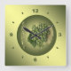 White Grapes ~ Botanical Clock ~ Kitchen ~ Green & Yellow Background Square or Round