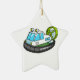 White, Green, and Black Cartoon Hovercraft Ceramic Tree Decoration