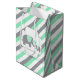 White, Green & Grey Stripe Elephants Baby Shower Medium Gift Bag