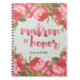 Vintage white and pale green lace matron-of-honour spiral notebook with pink roses and calligraphy. Personalised.