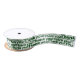 A white and green lawn care service - Thank you! - satin ribbon shows a colour-customisable typography pattern - Thank you!. The ribbon is part of a lawn care company marketing package and completes stylish gift wrapping for your customers. For assistance or to discuss a custom design, contact https://t.me/KBMD3signs_chat.