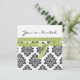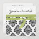 White & Green linen Damask baby shower invite