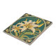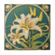 White Green Oriental Lily Art Nouveau Inspired Ceramic Tile