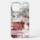 Modern white grey burgundy red abstract iPhone 12 Case. Structured effect Abstract Art Style. Original modern fashion design by Imre Toth. Modern, rustic, elegant abstract art design for your beautiful life. Click the Personalise button to add your Name or monogram. Click the customise text to add your own text and photos to create a unique one of a kind design.