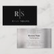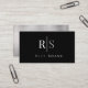 White & Grey Monogram & Name, Black & Silver Business Card
