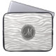 White & Grey Zebra Monogram Pattern Laptop Sleeve