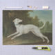 This design features a painting by the French artist Jean-Baptiste Oudry (1686–1755). It shows a lithe white greyhound leaping through a rural landscape. The dog's body is slender but muscular and strong. The greyhound is wearing a blue collar around its neck. Its tail is curled up in the air as it runs and jumps. The dog's head is turned and it is looking behind as though it is being chased. There are many trees with green leaves in the background.