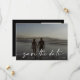 Beautiful calligraphy lettering in white to overlay your photo save the date card. This is beautiful typography on a full bleed one card photo with white lettering. It includes a light gradient overlay if your photo needs it behind the text. You can keep or delete the soft gradient if you don't need it.