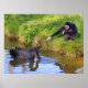 White-handed gibbon or white-handed gibbon (Hylobates lar) and black swan (Cygnus atratus) on water