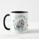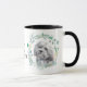 Each side of this mug has a beautiful watercolor portrait of an adorable white Havanese Dog in a blue green leaf wreath. Between the two images is text which says "LOVE MY HAVANESE" in black. The text may be easily changed, or even removed, if you prefer.