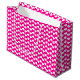 A gift bag with white hearts on a pink background. You can choose the background colour of your preference.
