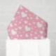 Destei's simple pattern of white colour hearts in different sizes on a pink background colour.