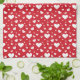 Destei's simple pattern of white colour hearts in different sizes on a red background colour.