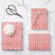 White Hearts on Bright Red Linen Wrapping Paper Sheet