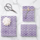 White Hearts on Dark Purple Linen Wrapping Paper Sheet