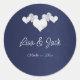 White Hearts on Navy Elegant Classic Round Stickers designed with soft white hearts on a navy coloured background. The text includes: The Bride and Groom's First Names and Wedding Date. To personalise, simply insert your text into our easy template, replacing the sample. Classic Round Sticker, Wedding Favours and Packaging Sticker.