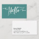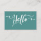 This simple, friendly card features the word "Hello" on the front. It has been rendered here in a beautiful, modern script font, with swirling embellishments, in bold white. The background of the front was set to editable teal, which you can change to any colour you prefer | Your personal details appear on the back. I've set up template fields for your name, phone number, email address, and there's one additional line for whatever else you'd like to include. Of course you can make further changes, too! Whereas just filling in the template fields will render your details in black, in a versatile serif font, left and bottom-aligned, should you wish to make even more updates, simply click the link for further customisation and you can change the font, size, its colour, the background colour, and the positions of the words. You can also use this option for placing additional text fields on the card, should you need to include more personal information. Please let me know if you need help with anything!