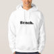 Men's basic hooded sweatshirt in white, depicting the word Bench in black.