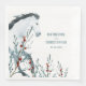 A watercolor painted blue juniper branch with red berries and a winter white horse your names and numeric date in a rustic block lettering.