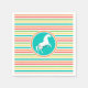 Cool white horse silhouette with name on colourful red, orange, yellow, green, blue, white rainbow stripes pattern.
