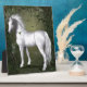 A magical white horse stands in the woods, with brightly coloured hummingbirds all around in this fantasy digital artwork by artist Jayne Wilson. Horse lovers and fantasy art enthusiasts will enjoy this image.