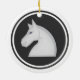 White Horse Knight Chess Ornament. A chess game piece piece symbol round ornament, buy all chess pieces ornaments (16 pieces of each colour, 32 in total: one king, one queen, two rooks, two knights, two bishops, and eight pawns) to collect all chess game pieces!