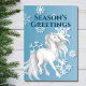 This Season's Greetings Christmas holiday greeting card features a beautiful white horse with a flowing mane and tail with a white and blue winter snowflake background. Inside Greeting - "Wishing you a Beautiful Holiday Season filled with Joy and Laughter!" - The greeting can be personalised to read as you wish.