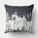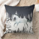 White Horse Snowy Night Eastern Pine Tree Forest Cushion